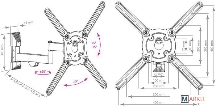 | Расстояние от стены (потолка) | 55 — 425 мм |