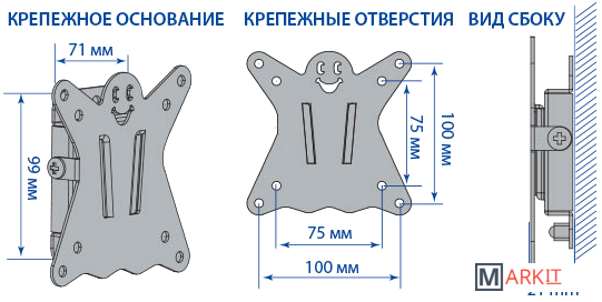 | Совместимая диагональ экрана | 10 — 26 " |