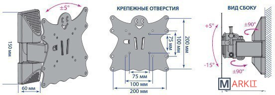 | Совместимая диагональ экрана | 15 — 40 " |