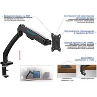 | Функциональные особенности | поворотный, с регулировкой высоты, кабель-канал, струбцинное крепление |