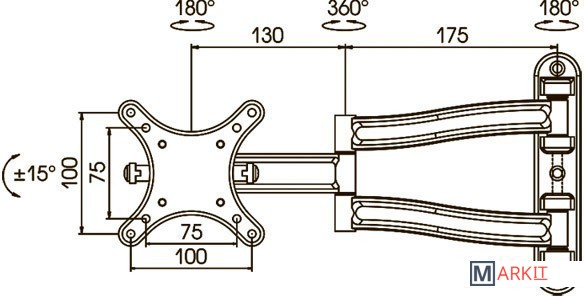 | Угол поворота (без ТВ) | 180 ° |