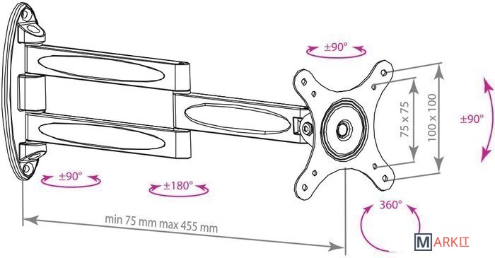 | Расстояние от стены (потолка) | 75 — 455 мм |