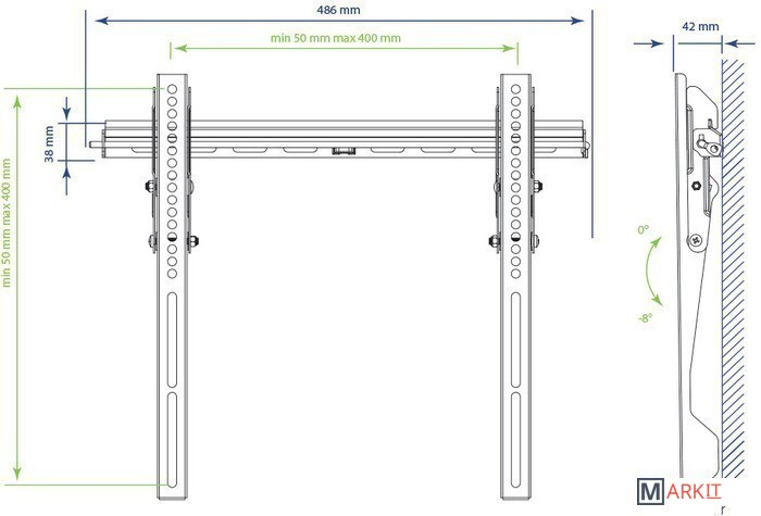 | Угол наклона (без ТВ) | 8 ° |