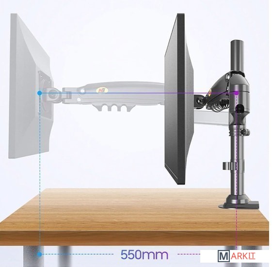 | Функциональные особенности | поворотный, кабель-канал, струбцинное крепление, для 2 мониторов |