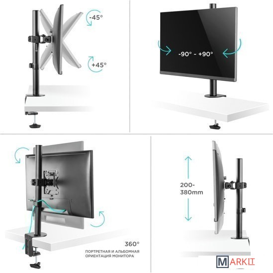 Функциональные особенности поворотный, с регулировкой высоты, струбцинное крепление