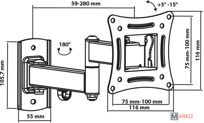| Расстояние от стены (потолка) | 59 — 280 мм |