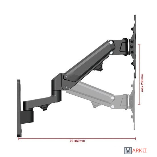 Кронштейн серии ГАЗЛИФТ настенный для телевизоров или мониторов, поворотно-наклоный, с функцией перемещения вверх-вниз и регулировкой плавности хода.