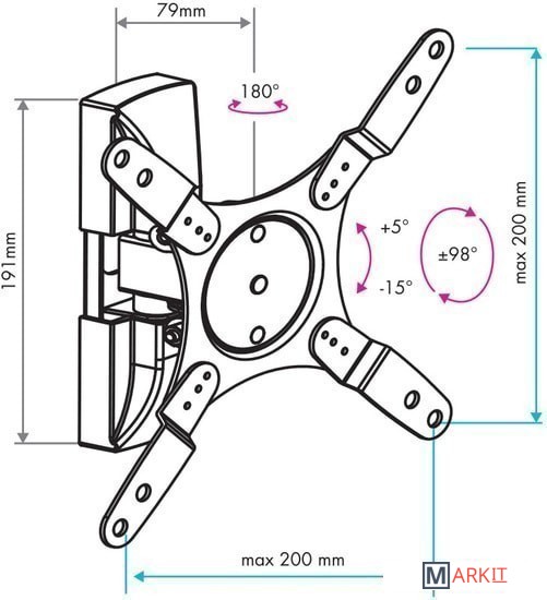 | Угол поворота (без ТВ) | 90 ° |