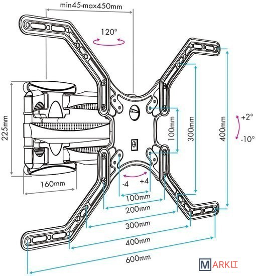 | Расстояние от стены (потолка) | 45 — 450 мм |