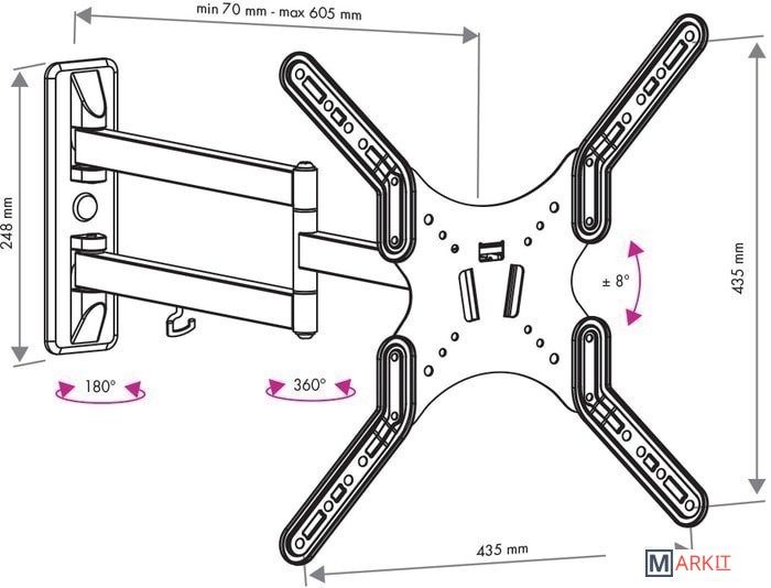 | Расстояние от стены (потолка) | 70 — 605 мм |