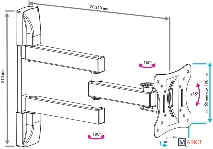 | Угол поворота (без ТВ) | 180 ° |