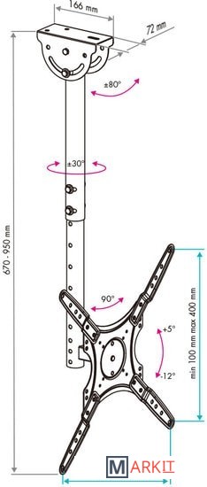 | Угол поворота (без ТВ) | 90 ° |