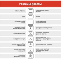 | Режимы работы духового шкафа |