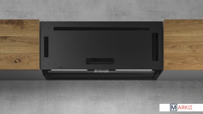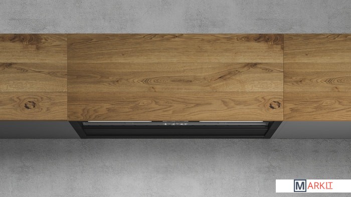 Вытяжка имеет скрытый монтаж. На вытяжку устанавливается фасад кухни.Глубина вытяжки регулируется только во время монтажа.