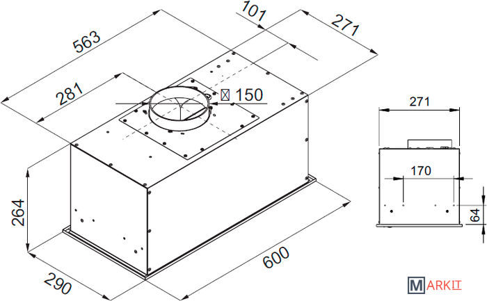 | Диаметр воздуховода | 150 мм |