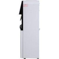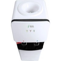 Компактный кулер для воды без охлаждения, только нагрев. С небольшим шкафчиком в нижней части. Корпус белого цвета с черной вставкой в области кранов подачи воды. Индикация режимов работы, нагрева и готовности воды. Краны «нажим кружкой».