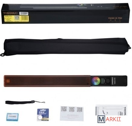 Источник питания в комплект поставки не входит.YN360 III - это совершенно новый светодиодный осветитель компании Yongnuo, который реализует более яркий свет, обеспечивает больший угол освещения и позволяет настроить практически любой оттенок. Осветитель состоит из 360 ультраярких обычных светодиодов и 60 полноцветных светодиодов RGB SMD.Модель YN360 III оснащена новейшим многоканальным контроллером беспроводного управления, благодаря чему настройку яркости и включение осветителя можно выполнять не только посредством камеры. В то же время можно задавать настройки для каждой из 8 групп осветителей в отдельности. Осветитель поддерживает возможность дистанционного управления через приложение на мобильном телефоне. Загрузите приложение на официальном сайте компании Yongnuo. После его установки на мобильный телефон появляется возможность управлять осветителем дистанционно со своего телефона, считывать текущие значения яркости и канала связи, а также переключаться между 8 доступными группами.Осветитель YN360 III оснащен двумя сетевыми входами, т.е. может работать от литиевого аккумулятора типа NP-F и внешнего источника питания. В осветителе используется запатентованная компанией Yongnuo технология управления с помощью светодиодов, что позволяет эффективно предупредить появление волн и стробоскопических вспышек.