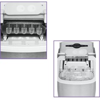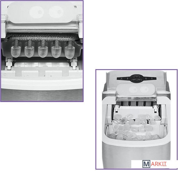 Лёд всего за 13 минут!Льдогенератор КТ-1817 – прибор, который быстро генерирует лёд. Его можно использовать дома для приготовления охлаждённых напитков или для охлаждения жидкостей. Готовый лёд не подмораживается, а медленно тает благодаря термоизолированным стенкам.Генерация льда в виде напёрстков с функцией изменения размера льдаИз-за оригинальной технологии приготовления лёд получается в виде напёрстков. Толщина у них небольшая, поэтому лёд легко измельчается блендером. Напёрстки компактно помещаются в стакане, при этом хорошо пропуская жидкость, которую надо охладить.Автоматическая работаОхлаждение в приборе производится при помощи компрессора с экологически чистым хладагентом R600a по принципу обычного холодильника. Вам нужно просто залить чистую фильтрованную воду в резервуар и нажать кнопку. Остальное льдогенератор сделает сам!Отлаженный механизм генерации льдаПосле попадания воды в лоток для льда под испарителем, на поверхности испарителя намерзает вода. Когда лёд готов, на него подаётся горячий пар. Он начинает таять и отваливаться от испарителя. Все упавшие кусочки льда отправляются в корзину.Всегда полная корзина!Благодаря инфракрасному датчику заполнения корзины, при её переполнении генерация льда автоматически прекращается. В случае, если лёд достали, льдогенератор запускает цикл заново, пока корзина не будет заполнена. В комплекте идёт совок для черпания льда.Простое управлениеУправление и выбор размера льда осуществляется с помощью кнопок на панели управления. Индикаторы сигнализируют о необходимости добавления воды, о заполнении корзины и о том, генерируется ли в данный момент лёд или прибор находится в режиме ожидания.Удобный сливЕсли в резервуаре осталась вода, её можно легко вылить. Для этого нужно выдвинуть прибор на расстояние 60 мм от стола, подставить ведро или какую-нибудь ёмкость для воды, и вытащить сливную пробку.Отклеивающийся стикер!Наша техника порадует вас не только своим функционалом, но и интересным дизайном! В любой момент вы можете отклеить креативный стикер без вреда для поверхности.