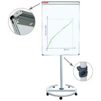 Белое лаковое покрытие предназначено для письма специальными маркерами для белой доски. Размер доски – 100х70 см. Регулируется по высоте до 195 см. Устанавливается на передвижной опоре, оснащенной роликами. Металлическая поверхность позволяет размещать объявления при помощи магнитов. Блокнот крепится при помощи неподвижных винтов. Идет в комплекте с лотком для аксессуаров, маркером, стирателем и 6 магнитами. Для защиты рабочей поверхности доски на нее нанесена защитная пленка. Перед началом работы необходимо удалить защитную пленку.