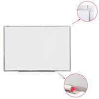 Лаковое покрытие предназначено для письма специальными маркерами для белой доски, а металлическая поверхность позволяет размещать информацию при помощи магнитов. Доска размером 120х180 см имеет укрепленные пластиковые уголки, которые позволяют скрыть места крепления к стене. Профиль придает изделию дополнительную прочность и современный стильный внешний вид. Полочка для аксессуаров и элементы крепления входят в комплект.