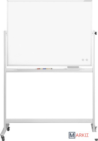 Мобильные доски Magnetoplan в рамке SP представляют собой прочные, устойчивые вращающиеся двухсторонние белые магнитно-маркерные доски. Площадь пишущей поверхности в два раза больше, чем у обычной настенной доски. Полимерная магнитно-маркерная поверхность для письма маркерами сухого стирания и размещения информационных материалов при помощи магнитов.Гарантия на поверхность - 5 лет.Бесступенчатый фиксатор угла наклона доски, благодаря которому доску можно зафиксировать под любым углом. Доска вращается на 360 градусов.Мобильная стойка на 4 колёсиках, два из которых блокируются для надежной фиксации положения доски. Высота мобильной стойки – 1,80м, ширина – 0,58м. Каркас офисной доски изготовлен из стали с долговечной порошковой окраской. В комплект поставки входит лоток для маркеров.