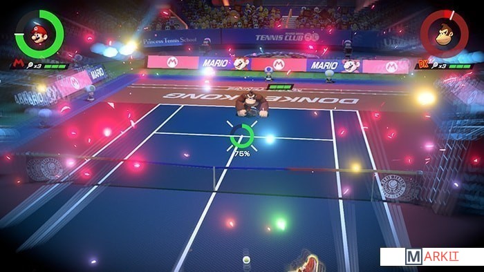 Марио выйдет на корт в классическом теннисном костюме и будет соревноваться с различными персонажами в полноценных теннисных матчах. В игре представлено более 15 персонажей, каждый со своими отличительными особенностями.Из-за нововведений в геймплее вам будет не так просто просчитывать позицию соперника и выбирать наиболее выигрышные удары. Благодаря этой игре с тонким стратегическим подходом вы увидите теннис в новом свете.В этот раз вас ждет полноценный сюжетный режим, впервые со времен Mario Tennis: Power Tour для Game Boy Advance, обновленный геймплей с разнообразными заданиями, сражения с боссами и многое другое.