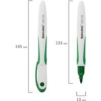 Высококачественный маркер BRAUBERG «SOFT LITE» для белой доски. Предназначен для письма на досках с магнитно-маркерной поверхностью.Маркер для доски зеленого цвета обладает круглым пластиковым корпусом диаметром 13 мм. Корпус оснащен резиновыми вставками для более удобного использования. Наконечник круглой формы обеспечивает толщину линии письма 3 мм, что позволяет писать крупным шрифтом, который будет хорошо виден. Благодаря спиртовой основе, чернила быстро высыхают и не оставляют разводов, легко стираются сухой губкой. Изделие не перезаправляется. Цвет клипа и резиновых вставок соответствует цвету чернил.