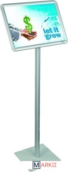 Доска информационная на подставке для размещения информации форматом А4 - горизонтальная ориентация. Высота подставки 80 см. Алюминиевый профиль 25 мм. Пластиковые, скруглённые уголки. Элементы крепления в комплекте.