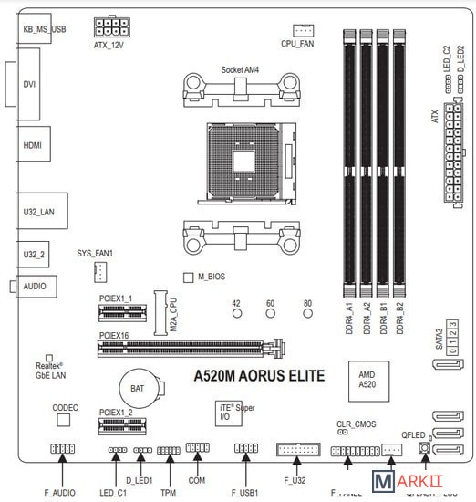 Markit » Материнские платы » Материнская плата Gigabyte A520M Aorus Elite (rev. 1.0)