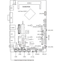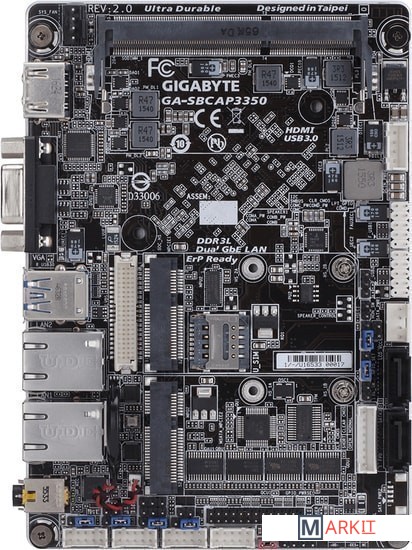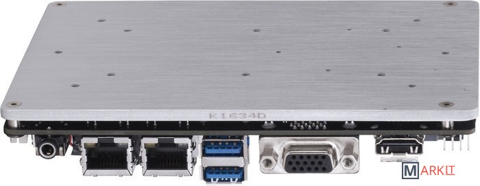 На плате присутствуют разъёмы:Mini-PCIe двойного назначения для модулей mSATA SSD;Mini-PCIe (1/2 длины) для модуля WiFi;Слот USIM;Разъем LVDS для подключения системного FP-дисплея;Разъем для усиления аудиосигнала, предусмотрена возможность подключения встроенного динамика мощностью до 2 Вт.