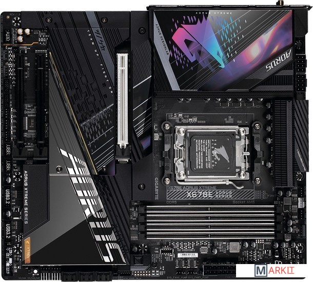 Процессорный разъем AMD Socket AM5 : Совместимость с процессорами AMD Ryzen™ 7000 серииНепревзойденная производительность : Цифровой VRM-модуль, целевые фазы питания (схема 18+2+2)Разъемы 2-канальной подсистемы памяти DDR4 : 4*SMD DIMMs with EXPO & XMP Memory Module SupportДисковая подсистема нового поколения : 4 разъема M.2, шинный интерфейс/режим работы PCIe 5.0 x4Массив пластин Fins-Array III радиатора VRM и радиатор M.2 Thermal Guard III : To Ensure VRM Power Stability & 25110 PCIe 5.0 M.2 SSD PerformanceФиксаторы EZ-Plus : SMD PCIe 5.0 x16 Slot & M.2 Connectors with Quick Release & Screwless DesignHi-Fi аудиоподсистема, приложение DTS:X® Ultra : Аудиокодек Realtek ALC1220 и Hi-Fi ЦАП ESS SABRE 9118, внешний ЦАП USB ESSential в комплектеВысокоскоростные сетевые интерфейсы : Marvell® AQtion 10GbE LAN & Intel® Wi-Fi 6E 802.11axРасширенные коммуникационные возможности : DP, HDMI, порт USB Type-C® 10 Гбит/с, два порта USB Type-C® 20 Гбит/с, совместимость с ожидаемыми вскоре платами расширения GIGABYTE USB4 AICQ-Flash Plus : Возможность обновления микрокода BIOS материнской платы без необходимости установки в систему ЦП, модулей ОЗУ и дискретной графической платы