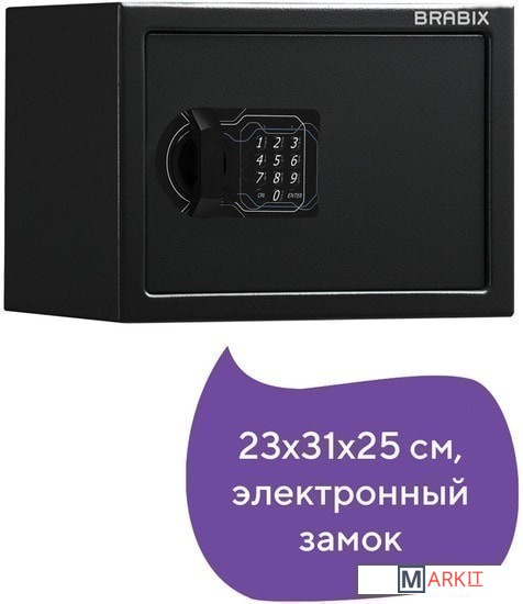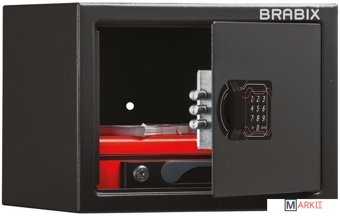 Мебельные сейфы BRABIX серии "SF" предназначены для хранения незначительных ценностей, документов и личного огнестрельного оружия. Могут использоваться как в офисе, так и дома.Изделие имеет ригельную систему запирания, диаметр ригелей до 20 мм.На сейф установлен электронный кодовый замок PLS-3 (Россия) со световой и звуковой индикацией, позволяющий запрограммировать свой уникальный код (от 4 до 8 знаков). В комплект входит аварийный мастер-ключ, на случай, если забыли код или вышли из строя элементы питания. Подробная инструкция по эксплуатации замка в комплекте.