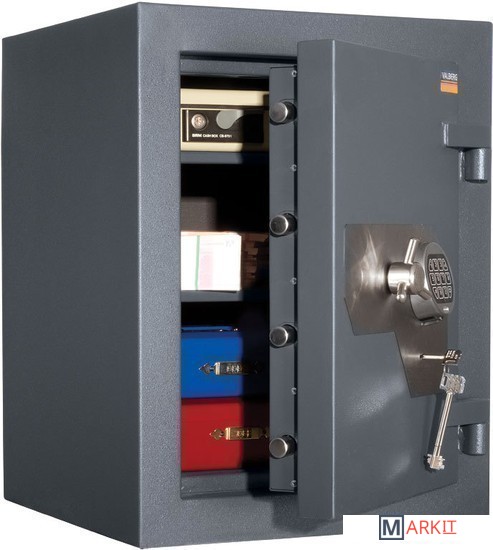 Отличительная особенность этой модели - два ригельных замка, ключевой и электронный. Трехсторонняя система запирания насчитывает 8 ригелей, что увеличивает надёжность данной модели. Защиту замков от высверливания и выбивания обеспечивают сверхпрочные металлические элементы. Утолщенные боковые стенки и лицевая панель хранилища этого сейфа являются непреодолимой преградой для взломщиков. В Форт 67 EL + KL предусмотрены две вместительные полки, которые призваны упорядочить содержимое сейфа.