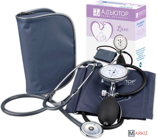 Механический тонометр комбинированного типа (Палм).В отличие от классических тонометров в тонометрах «LUXE» манометр, клапан сброса давления и нагнетатель жестко соединены в одно целое. Это позволяет сделать процесс измерения давления более удобным, а также позволяет использовать не 2-трубочную, а 1-трубочную пневмокамеру, что позволяет повысить надежность прибора в целом.Анероидный манометр в корпусе из ударопрочного пластика с легкочитаемой шкалой увеличенного диаметра (65 мм). Улучшенный нагнетатель из ПВХ, металлический игольчатый клапан сброса воздуха (боковой винт). Удобная и гигиеничная манжета из нейлона с металлической скобой. Цельнолитая 1-трубочная пневмокамера из латекса или ПВХ. Металлический стетофонендоскоп с односторонней головкой. Индивидуальная упаковка — нейлоновая сумочка с логотипом и коробка из микрогофрокартона с полноцветной печатью.