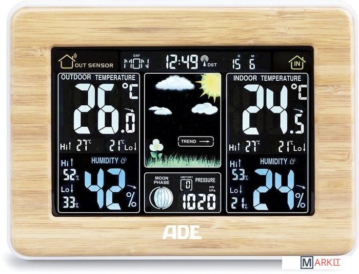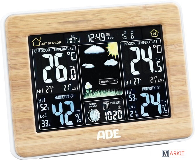 Markit » Метеостанции, гигрометры и термогигрометры » Метеостанция ADE WS1703 (бамбук/белый)