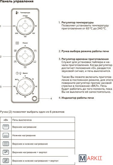 | Режимы работы духового шкафа |