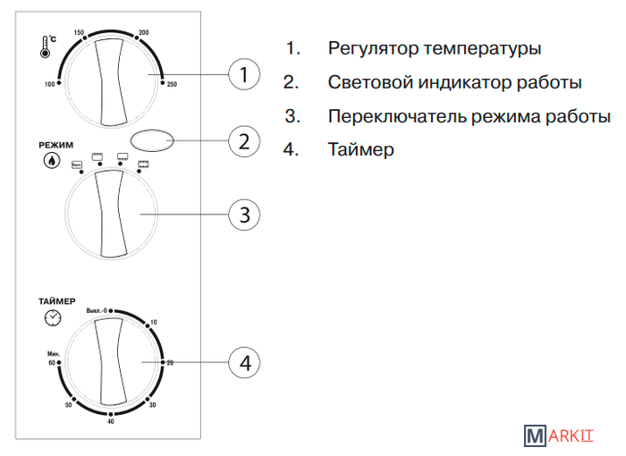 | Режимы работы духового шкафа | |