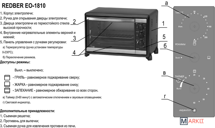 Markit » Мини-печи (ростеры) » Мини-печь Redber EO-1810