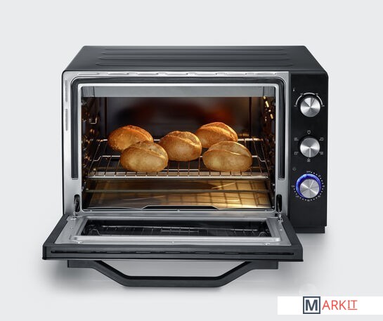 TO 2066 XXL Печь для выпечки и тостов60-литровая рабочая камера XXL для больших порций с внутренним освещением и высококачественным антипригарным покрытием для легкой очисткиидеальная хрустящая пицца благодаря входящему в комплект очень большому камню для пиццы ( 30,5 см) и функции нижнего/верхнего жарапростое приготовление цыплят на гриле с помощью функции гриля с включенным грилем и приводом для гриляШирокий выбор вариантов приготовления от картофеля фри до пирогов благодаря верхнему/нижнему нагреву, функции конвекции и прилагаемым решетке для гриля и противню.Мощность: около 2200 Втутепленный корпус2-часовой таймер с функцией автостопа для всех режимов