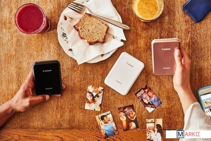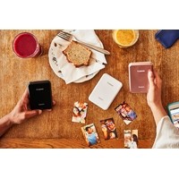 Карманный принтер Canon Zoemini для мгновенной печати фотографий с мобильного устройства с помощью Bluetooth и приложения Canon Mini Print. В приложении доступны редактор фото, фильтры, рамки, стикеры, элементы дополненной реальности, а также функция создания коллажей из 4 или 9 снимков. Устройство выполнено в миниатюрном корпусе и помещается в кармане или небольшом отделении сумки. Специальная фотобумага ZINK представляет собой многослойный материал с микрокристаллами, которые при нагревании создают водонепроницаемое и устойчивое к пятнам и разрывам покрытие. Бумага оснащена съемным защитным слоем для приклеивания фотографии на любую поверхность.