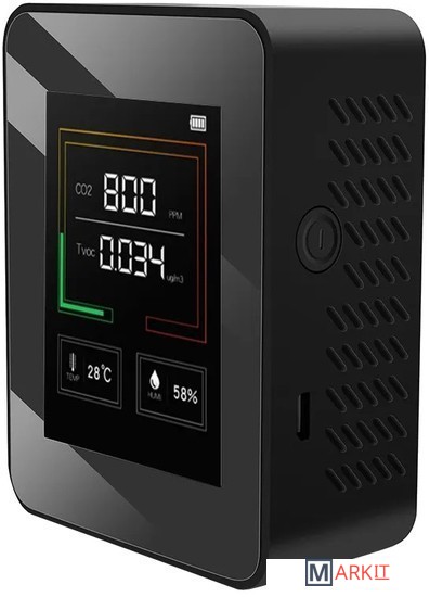 Монитор качества воздуха Rixet K03 обнаруживает углекислый газ, определяет температуру и влажность. Интеллектуальная система сигнализации, оценка риска, алгоритм обнаружения газа, многократное подавление, технология конвекции воздуха, калибровка компенсации парниковых газов. Углекислый газ обновляется в режиме реального времени каждую секунду, концентрация углекислого газа постоянно меняется и отображается на ЖК-экране 2.8 дюйма. Газоанализатор в режиме цветового напоминания, поэтому всегда легко обратить внимание на концентрацию углекислого газа. Монитор качества воздуха отображает концентрацию углекислого газа, обнаруженную на кубический метр, в режиме реального времени. Диапазон измерения от 400 до 5000 ppm.