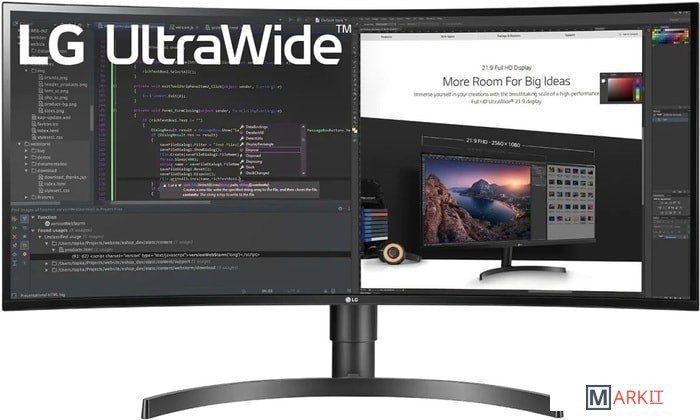 широкоформатный, изогнутый, с поддержкой HDR, с USB-C подключением, с регулировкой по высоте |