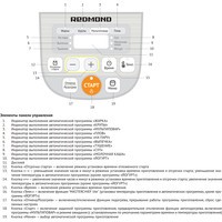 | Режимы приготовления | выпечка, жарка, йогурт, крупа, молочная каша, мультиповар, пароварка, плов, суп, тушение (+ выпечка хлеба, расстойка теста, фондю, творог, сыр, пастеризация жидких продуктов, стерилизация посуды, подготовка к консервации) |