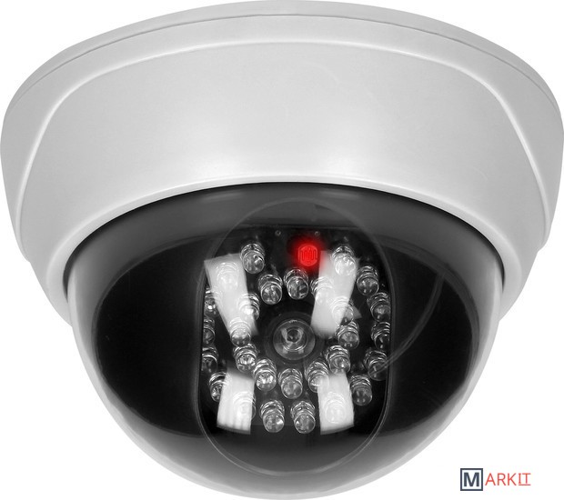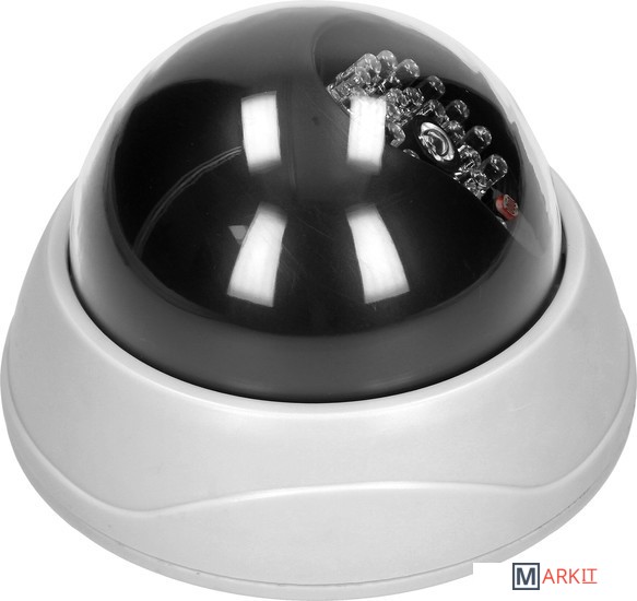 Макет купольной камеры наблюдения с инфракрасной системой видеонаблюдения, питание от батареи. Товар не имеет электронные активные цепи. Питание от 2-х батареек формата AA, которые не входят в комплект.