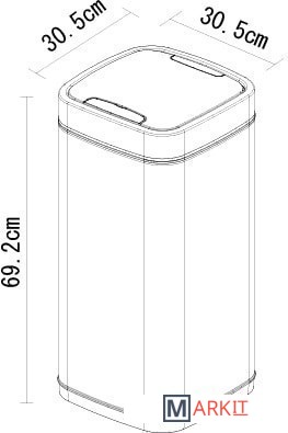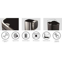 Сенсорное мусорное ведро EKO Ecosmart EK9288 выполнено из стали, окрашенной порошковой эмалью. Благодаря специальному защитному слою на поверхности не остается следов отпечатков пальцев и подтеков. Внутри находится съемный пластиковый контейнер для сбора мусора с удобной фиксацией мусорных пакетов и металлической ручкой для переноски.Мусорное ведро может открываться несколькими способами: проведя рукой над ведром на расстоянии 15-20 см (крышка закрывается автоматически через 5 секунд) или нажатием на дисплее на кнопку OPEN (крышка будет открыта до тех пор, пока не будет нажата кнопка CLOSE). Питание производится от 4-х батареек типа LR6/AA (батарейки в комплект не входят).