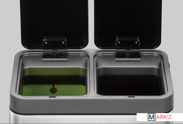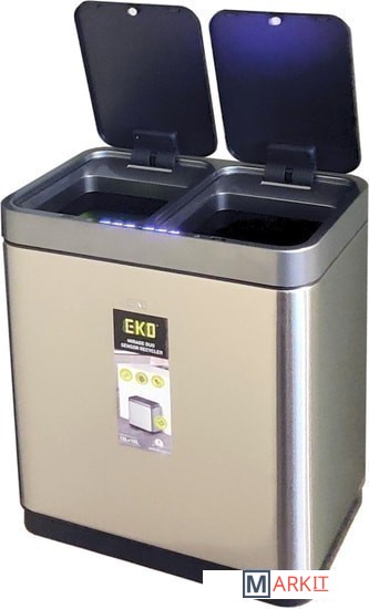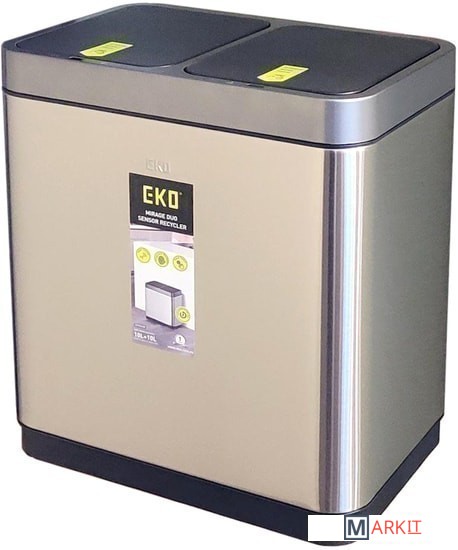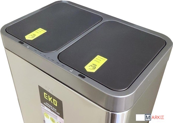 Новая модель сенсорного мусорного ведра EKO™ EK9263 RMT-10L+10L серии MIRAGE DUO SENSOR BIN с двумя отсеками для раздельного сбора отходов, изготовленная из благородной нержавеющей стали, оснащенная встроенным перезаряжаемым литий-ионным (Li-Ion) аккумулятором, предназначена для использования как в жилых помещениях городского и загородного типов, так и в организациях и учреждениях. Модель EK9263 RMT-10L+10L оснащена новейшей системой электронного сенсорного управления с функцией плавного бесшумного открывания крышек, двумя независимыми панелями управления, двумя отдельными независимыми крышками, двумя вставными полипропиленовыми контейнерами для раздельного сбора отходов, оснащенным системой легкой и быстрой фиксации мусорного мешка, а также корпусом из благородной нержавеющей стали со специальным защитным покрытием, защищающим ведро от появления на поверхности жирных отпечатков пальцев. Модель EK9263 RMT-10L+10L, обладает достаточной вместимостью для утилизации отходов разных габаритов, таких как упаковки от продуктов и пластиковые бутылки. Сенсорная корзина для мусора EKO™ автоматически открывается бесконтактным инфракрасным сенсором при поднесении к ней руки и автоматически закрывается через 5 секунд после того, как рука будет убрана. Также урна имеет органы управления для ручного открывания крышки. Для этого необходимо коснуться сенсора «OPEN», при этом крышка откроется и будет зафиксирована в открытом положении. Для закрытия крышки и перевода управления в автоматически режим пользователю необходимо коснуться сенсора «CLOSE».
