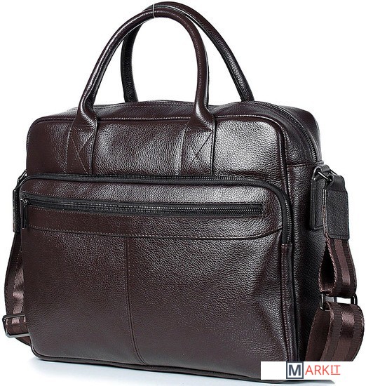 Мужская деловая сумка из натуральной кожи на двух коротких ручках. Имеет дополнительно плечевой ремень из тесьмы. Объемное центральное отделение дополнено боковыми карманами-отделениями и содержит необходимый набор функциональных карманов. Конструкция: мягкая выворотная.