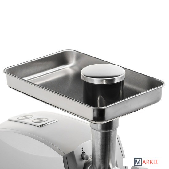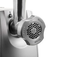 Насадки для мясных блюд3 решетки для фарша и насадки для домашних колбас и кеббе позволят готовить разнообразные мясные блюда: от рубленного бифштекса до паштета.Приготовление овощей и салатовНасадка для нарезки кубиками и двусторонняя терка-шинковка делают приготовление салатов, супов, закусок и гарниров быстрым и легким.Высокая мощностьДвигатель мощностью 2000 Вт и две скорости работы позволяют получать фарш правильной консистенции из мяса разных типов.