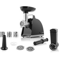 * Измельчает мясо, заполняет сосиски* Возможность терки и нарезки различных продуктов* Шлифовальный нож и пластины из твердой нержавеющей стали* Высокая безопасность* Функция REVERSE дляреверсирования мотора * Металлическая камера измельчения* Мощный мотор с потребляемой мощностью до 1000 Вт* Противоскользящие ножки для обеспечения устойчивости* Защита двигателя от повреждений* Длина шнура питания 0,8 м* Заявленный уровень звуковой мощности 85 дБ (А) при 1 пВт* Простота эксплуатации* Простой и быстрый монтаж