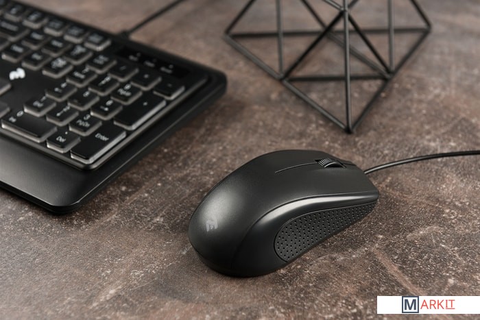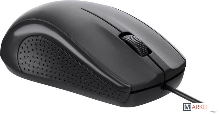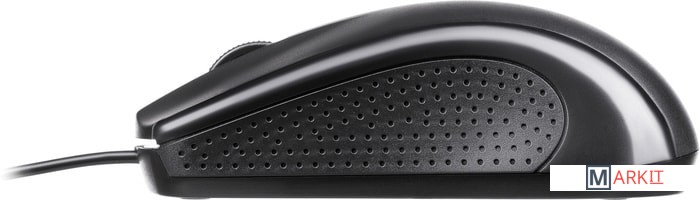 Класическая проводная мышка стандартного размера для выполнения ежедневных задач. Матовый пластик, фактурные боковые вставки делают мышку удобной для длительного использования.